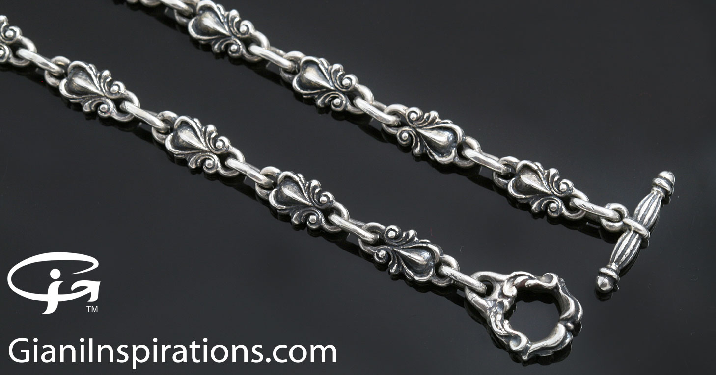 Madena Gothic Cross Two Tone Silver Pendant is shown with matching Gothic Heart Oxidized Sterling Silver Chain CN-001 that is sold separately.